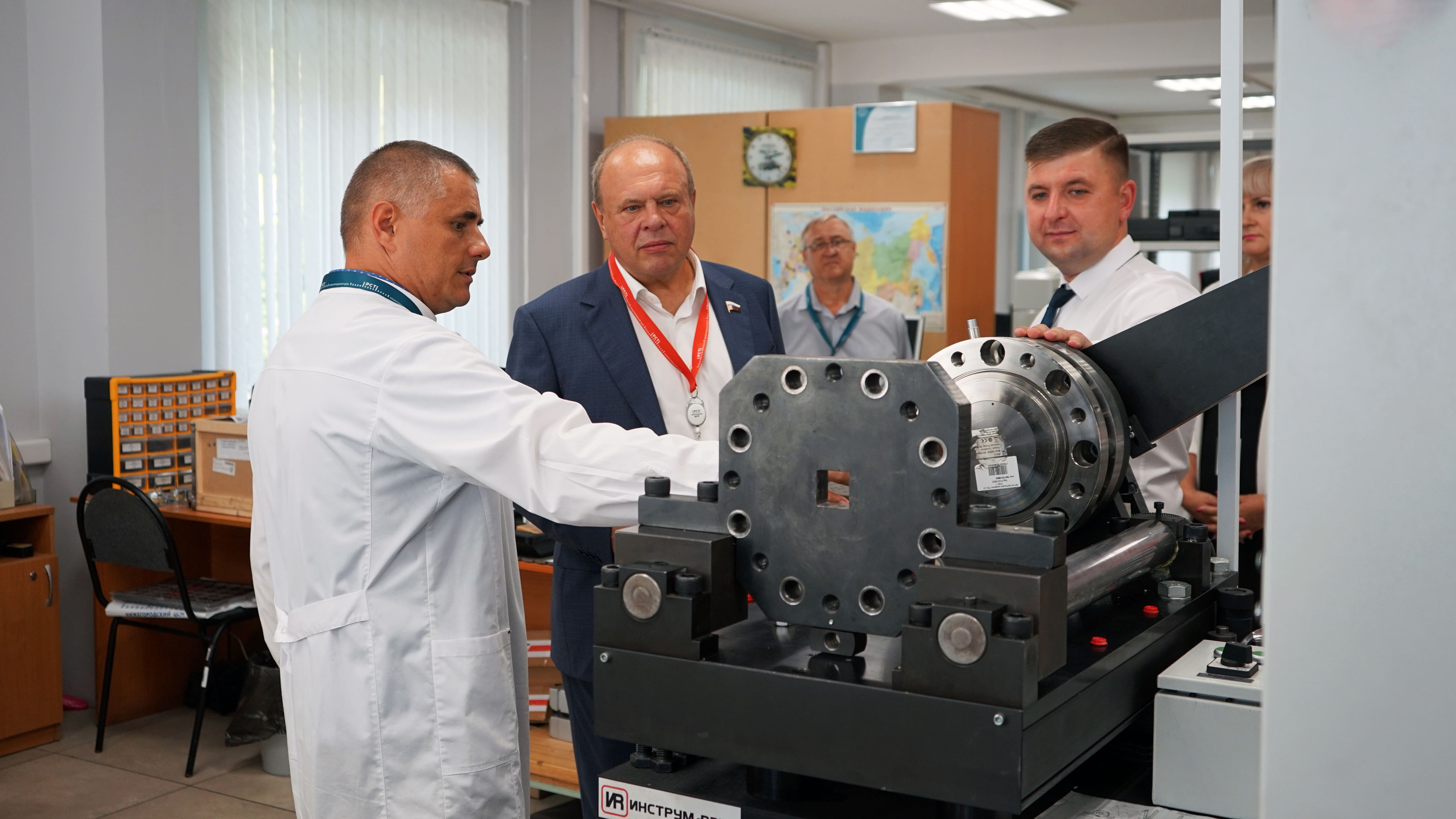 Заместитель председателя комитета Государственной Думы по транспорту и развитию транспортной инфраструктуры Анатолий Лесун и глава администрации Советского района Нижнего Новгорода Александр Иванов с рабочим визитом посетили Нижегородский центр стандартизации, метрологии и испытаний.