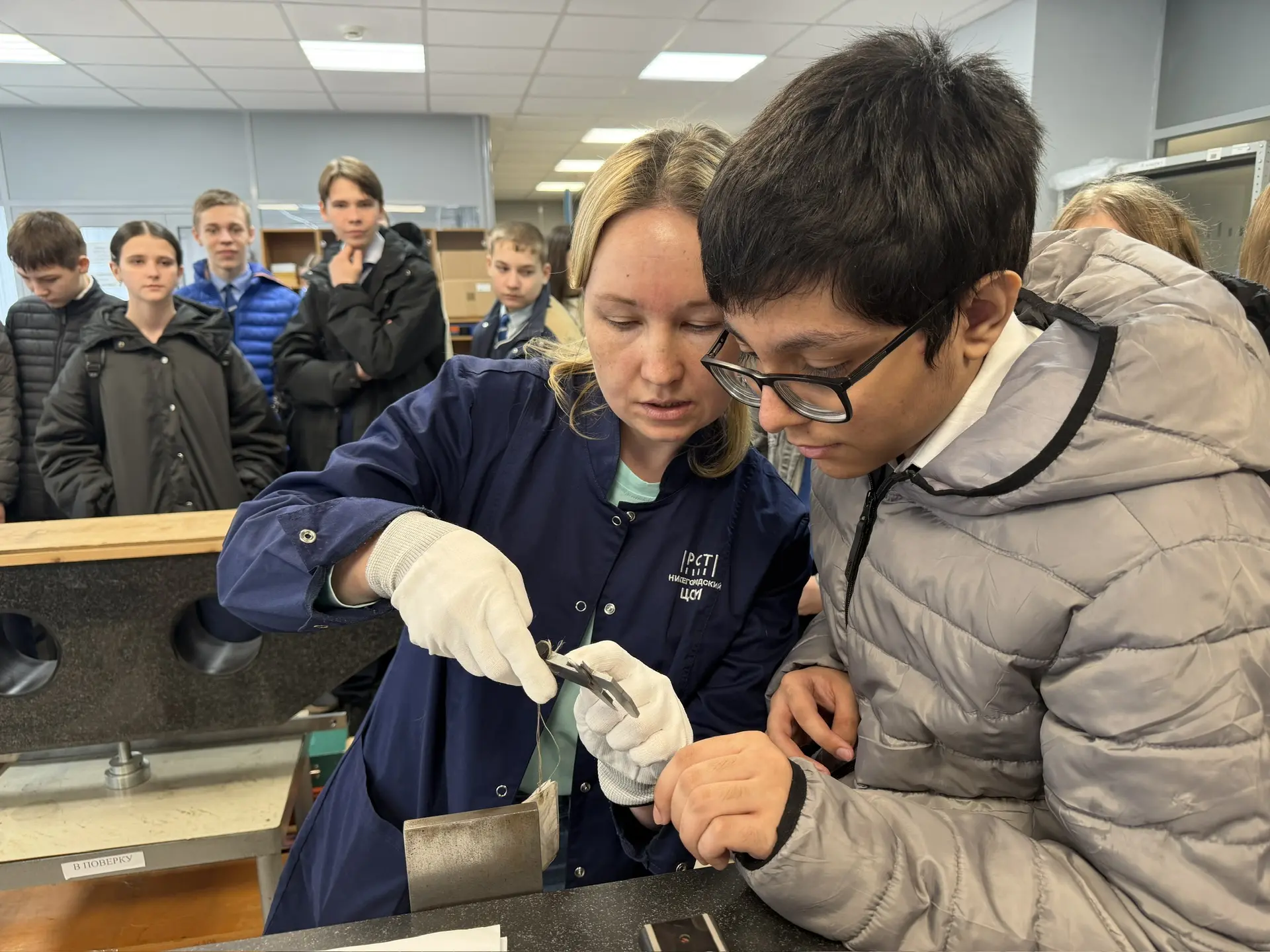 В лаборатории физико-химических измерений и испытаний участникам продемонстрировали работу газоанализатора, а в отделе механических измерений предложили интерактивное задание — измерение массы подписи. Особый интерес вызвала лаборатория испытаний продукции пищевой и легкой промышленности, где совместно с инженерами-химиками была проведена органолептическая оценка качества конфет. Завершилась программа посещением лаборатории испытаний металлических изделий, где участникам продемонстрировали испытания на ударную вязкость.